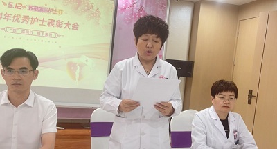 业务院长历国媛宣读了表彰决定。随后院领导给杨倩等9名优秀护士颁发了荣誉证书,给魏万丽、张祥敏分别颁发了优秀护士长,优秀护理人员荣誉证书。